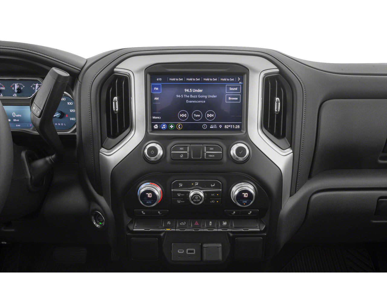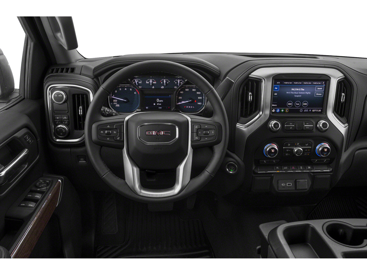 10-Way Power Driver Seat Adjuster w/Lumbar 12-Volt Rear Auxiliary Power Outlet 120-Volt Bed Mounted Power Outlet 120-Volt Instrument Panel Power Outlet 2 USB Ports 220 Amp Alternator 4-Way Manual Driver Seat Adjuster 4-Way Manual Passenger Seat Adjuster 4-Wheel Disc Brakes 4G LTE Wi-Fi Hotspot Capable 6 Speakers 6-Speaker Audio System Feature ABS brakes Air Conditioning Alloy wheels AM/FM radio Apple CarPlay/Android Auto Body-Color Surround Grille Brake assist Bumpers: body-color Cloth Rear Seat w/Storage Package Cloth Seat Trim Color-Keyed Carpeting Floor Covering Compass Deep-Tinted Glass Delay-off headlights Driver door bin Driver vanity mirror Dual front impact airbags Dual front side impact airbags Dual-Zone Automatic Climate Control Electric Rear-Window Defogger Electrical Lock Control Steering Column Electronic Stability Control Elevation Convenience Package Elevation Convenience Package w/Bucket Seats Elevation Value Package Exterior Parking Camera Rear Floor-Mounted Center Console Front 40/20/40 Split-Bench Seat Front anti-roll bar Front Bucket Seats Front Center Armrest w/Storage Front fog lights Front Frame-Mounted Black Recovery Hooks Front reading lights Front Rubberized-Vinyl Floor Mats Front wheel independent suspension Fully automatic headlights GMC Connected Access Capable HD Radio HD Rear Vision Camera Heated door mirrors Heated Driver & Front Outboard Passenger Seating Heated Steering Wheel Heavy Duty Suspension Heavy-Duty Rear Locking Differential Hitch Guidance Hitch Guidance w/Hitch View Illuminated entry In-Vehicle Trailering App Integrated Trailer Brake Controller Keyless Open & Start LED Cargo Area Lighting Low tire pressure warning Manual Tilt Wheel Steering Column Manual Tilt-Wheel & Telescoping Steering Column Occupant sensing airbag OnStar & GMC Connected Services Capable Outside temperature display Overhead airbag Overhead console Panic alarm Passenger door bin Passenger vanity mirror Power Door Locks Power door mirrors Power Front Windows w/Driver Express Up/Down Power Front Windows w/Passenger Express Down Power Rear Windows w/Express Down Power Sliding Rear Window w/Rear Defogger Power steering Power windows Preferred Equipment Group 3SB Preferred Package Premium audio system: GMC Infotainment System Premium Bose 7-Speaker Sound System ProGrade Trailering System Radio data system Radio: GMC Infotainment Audio System Radio: Premium GMC Infotainment Sys w/Multi-Touch Rear Dual USB Charging-Only Ports Rear reading lights Rear Rubberized-Vinyl Floor Mats Rear step bumper Rear Wheelhouse Liners Rear window defroster Remote keyless entry Remote Vehicle Starter System Security system Single-Zone Manual/Semi-Automatic Air Conditioning SiriusXM w/360L Speed control Speed-sensing steering Split folding rear seat Spray-On Pickup Bed Liner w/GMC Logo Steering Wheel Audio Controls Steering wheel mounted audio controls Tachometer Theft Deterrent System (Unauthorized Entry) Tilt steering wheel Traction control Trailer Tire Pressure Monitor System Trailering Package Trip computer Universal Home Remote Variably intermittent wipers Voltmeter Wheel Locks (Set of 4) (LPO) Wheels: 20' x 9' Black Gloss Painted Aluminum.