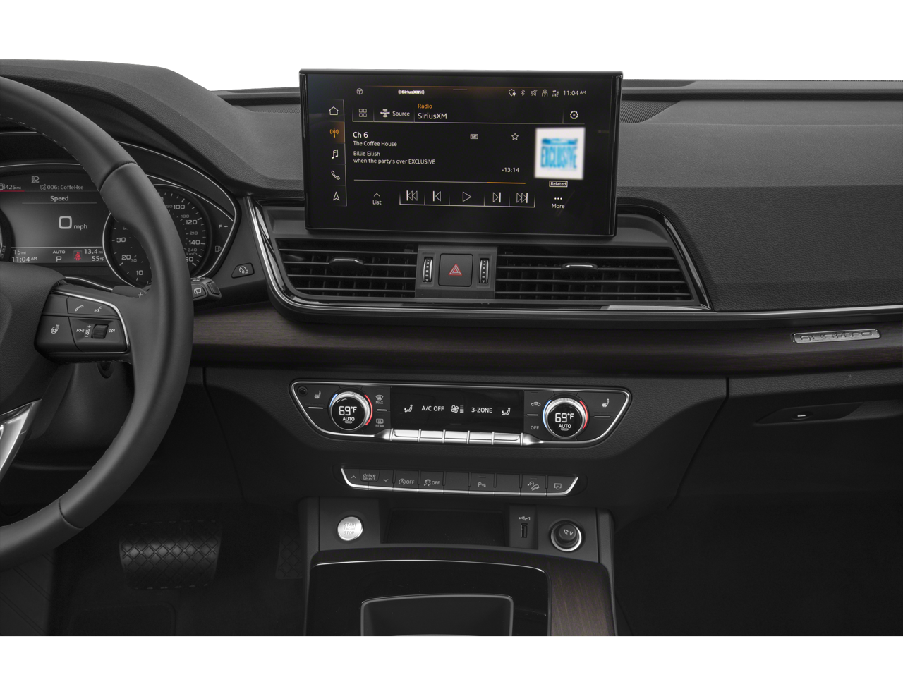 10 Speakers 4-Wheel Disc Brakes ABS brakes Air Conditioning Alloy wheels AM/FM radio AM/FM Stereo Audi Virtual Cockpit Plus Auto High-beam Headlights Auto-dimming Rear-View mirror Automatic temperature control Bang & Olufsen 3D Sound System Brake assist Bumpers: body-color Compass Delay-off headlights Driver door bin Driver Seat Memory Driver vanity mirror Dual front impact airbags Dual front side impact airbags Electronic Stability Control Emergency communication system: Audi connect CARE Exterior Parking Camera Rear Four wheel independent suspension Front anti-roll bar Front Bucket Seats Front Center Armrest Front dual zone A/C Front fog lights Front reading lights Garage door transmitter: HomeLink Genuine wood console insert Genuine wood dashboard insert Genuine wood door panel insert Heated door mirrors Heated front seats Heated Front Sport Seats Heated steering wheel Illuminated entry Leather Seating Surfaces Leather Shift Knob Leather steering wheel Leatherette Covered Center Console and Door Armrests LED Interior Lighting Plus Package Low tire pressure warning Occupant sensing airbag Outside temperature display Overhead airbag Overhead console Panic alarm Passenger door bin Passenger vanity mirror Power Adjustable Steering Column Power door mirrors Power driver seat Power Folding Auto-Dim Exterior Mirrors with Memory Power Liftgate Power moonroof: Panoramic Power passenger seat Power steering Power windows Premium Plus Package Radio data system Radio: MMI Navigation Plus Rain sensing wipers Rear air conditioning Rear anti-roll bar Rear fog lights Rear reading lights Rear seat center armrest Rear window defroster Rear window wiper Remote keyless entry Security system SiriusXM with 360L Speed control Speed-sensing steering Speed-Sensitive Wipers Split folding rear seat Spoiler Steering wheel mounted audio controls Tachometer Telescoping steering wheel Tilt steering wheel Top View Camera System Traction control Traffic Sign Recognition Trip computer Turn signal indicator mirrors Variably intermittent wipers Wheels: 19' 5-Double-Arm Design Bi-Color Finish.